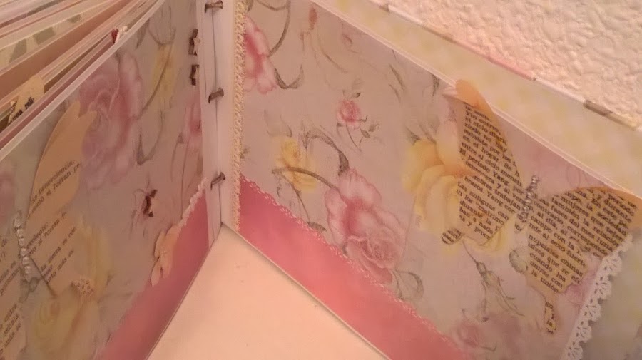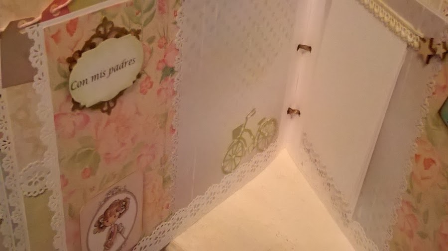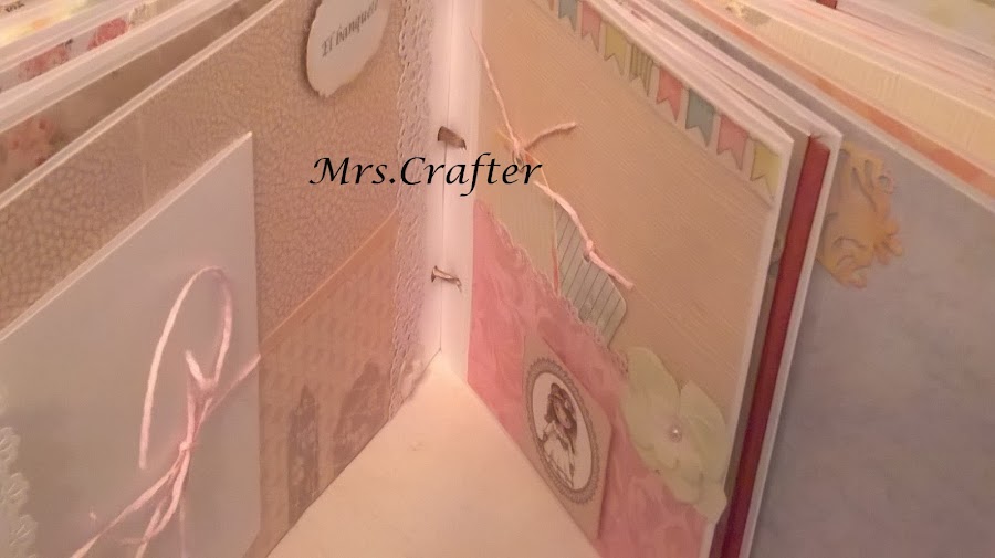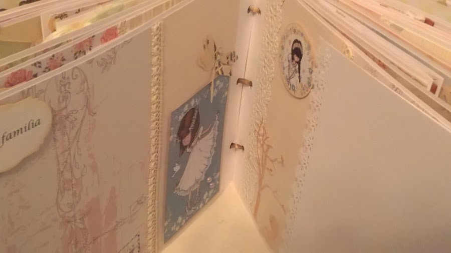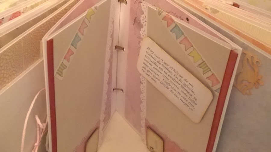 En esta ocasión, 20 páginas y , como en todos, mucho desplegable, cascadas, sobres con tarjetas para firmas de los invitados, bolsillos y hasta una pequeña libreta a modo de diario.