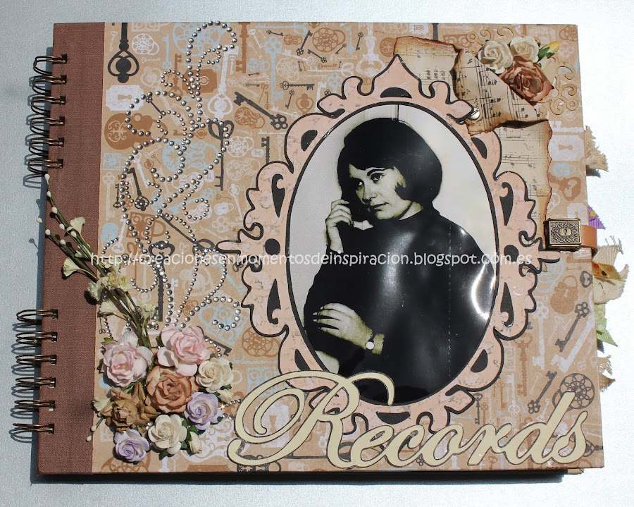 Se trata de un álbum, el cual iba destinado a la suegra de mi hermano, todo un reto, ya que Lourdes, que así se llama, también dedica parte de su tiempo libre a las manualidades y era consciente de que el "listón" estaba muy alto para conseguir sorprenderla. Pero si todo esto no era suficiente, había un pequeño detalle que lo complicaba más.... el estilo... Algo clásico pero no recargado, que sea entrañable pero no ñoño..... Hasta que mi cuñada dijo la frase que colmó el vaso.... "Vintage pero no rococó". En ese momento decidí que saldría lo que tenía que salir, según me inspirasen las treinta y tantas fotos que me habían dado....