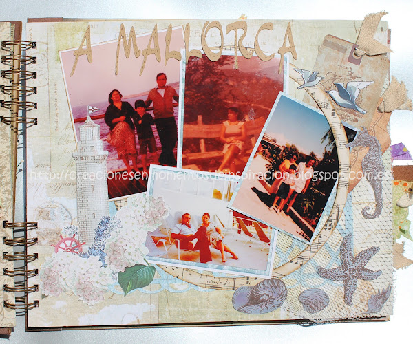 La siguiente lámina está dedicada a todos los viajes que hizo toda la familia a Mallorca, durante la juventud de los "papás". Para realizarla me inspiré en varios ejemplos encontrados en la web. Tenía muy claro que debía de predominar la decoración marítima y marina.