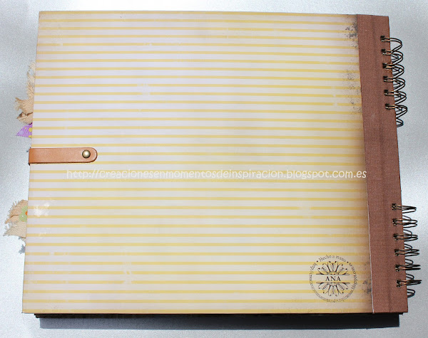 Y ya para finalizar, os enseño la contraportada, en tonos tierra, con el lateral del anillado decorado con tela de encuadernar, a juego con la portada, y podréis ver el detalle del cierre.