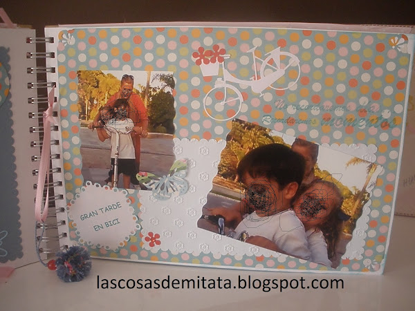 A veces te hacen encargos cargados de sentimiento y este es uno de ellos. Es un álbum de fotos personalizado hoja a hoja con caja a juego, hace un resumen de diferentes momentos de una parejita de amigos que son inseparables. Como no puedo enseñaros todas las hojas os he puesto tres momentos diferentes: durante la celebración de un cumple, aprendiendo a montar a caballo y una tarde en bici.