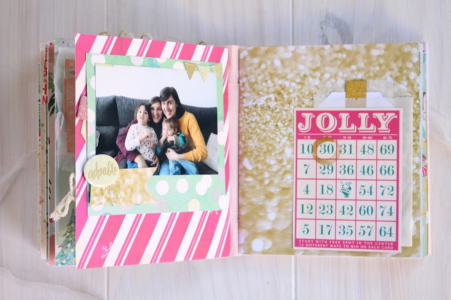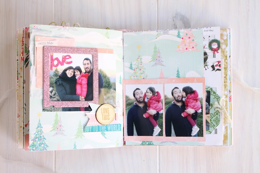En esta página combiné papeles de Crate Paper y otros que tenía de Navidad. La verdad es que este álbum lleva un gran remix de papeles y adornos acumulados de Navidades pasadas.