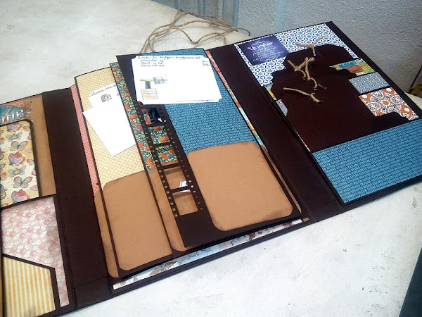 Formato fotofolio y papeles de Graphic45, espacio para foto y tarjeta de cada niño además de fotos de grupo, bolsillos....