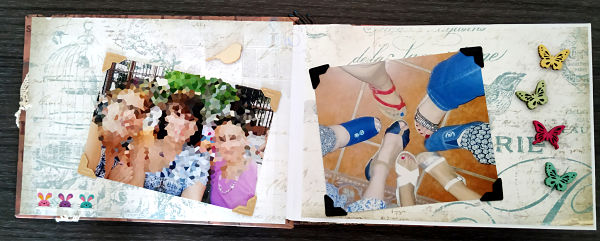 En éste álbum he puesto fotos con mis amigas, y como estos álbumes no están bonitos del todo hasta que no les pones las fotos y las "chuches" os lo voy a enseñar ya con todo puesto, pero para que ninguna me diga nada por enseñar sus fotos por Internet he difuminado o pixelizado las fotos para que no se distingan (espero que lo entendáis...)