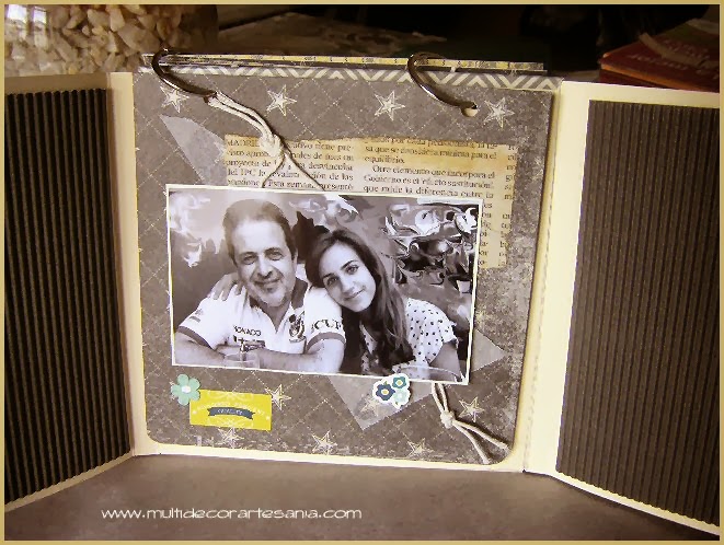 ¡Muy buenos días! Hoy os presento un nuevo álbum de fotos!!! Mucho más simple y menos decorado que los que he hecho hasta ahora, pero súper bonito! Es el regalo del 70 cumpleaños de la abuela de la familia en el que se querían reunir todos los viajes que han hecho juntos. Las portadas están hechas de una bonita tela de mapa mundi de colores azul y tonos tierra y un papel marroncito claro texturiz ...