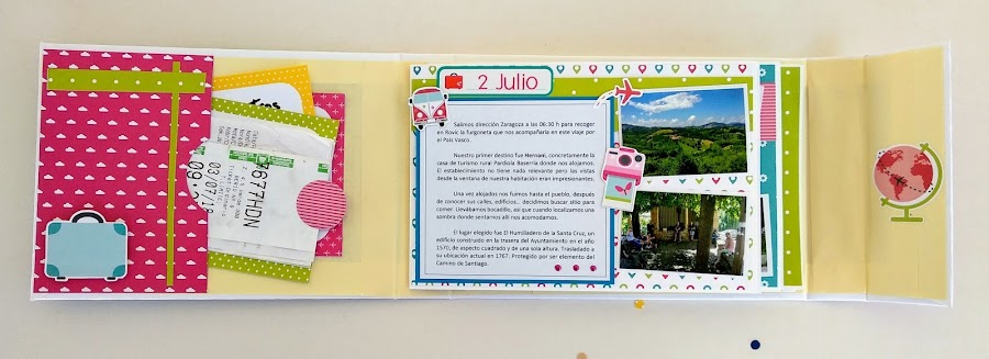 Ya sólo queda incluir las fotografías del viaje y completar cada una de las páginas a nuestro gusto. Mi álbum es un diario y tiene además textos. Os dejo alguna fotografía del interior.