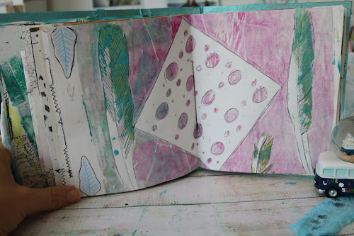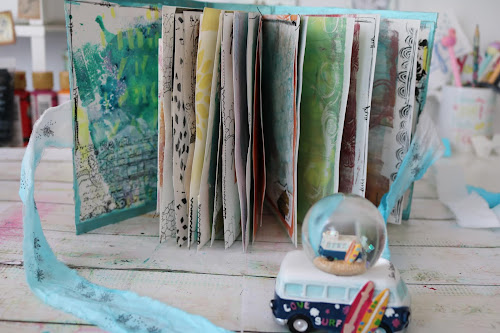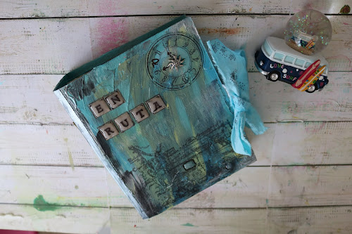 Este proyecto de scrapbooking, un álbum de viaje, o también llamado travelbook, está cargadito de color y diversión a partes iguales, porque realmente he disfrutado muchísimo, he probado muchos materiales empleados sobre la placa de impresión, y el resultado ha sido muy bueno.He reciclado la estructura con un cartón, y le he añadido cosido entre las páginas y el lomo. Además he añadido decoración en el lomo y en la tapa principal.El cierre está hecho con un retal de tela que hice con la técnica Tie-Dye.Y ahora sólo le faltaría llenarlo de fotos, porque la leyenda de los lugares a los que he ido ya lo he puesto, pero eso no sale en el vídeo ya que estas fotos están hechas antes de esto.