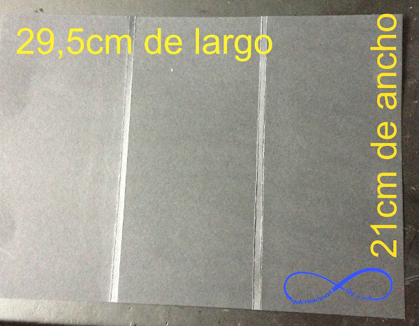 Paso 1: Necesitáis una cartulina con estas medidas(mirad la foto), una vez cortada le hacéis 4 marcas, que serían a los 9,5cm, 10cm, 19,5cm, 20cm.