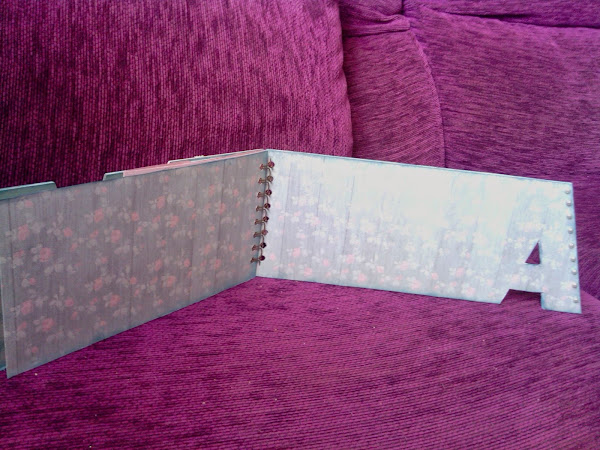 Está realizado en cartón piedra y decorado con papeles de scrap, sellos, bolsillos,etc...
