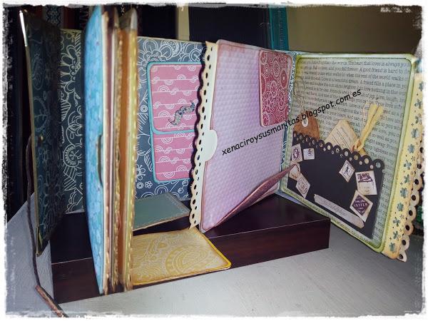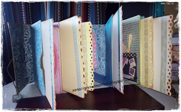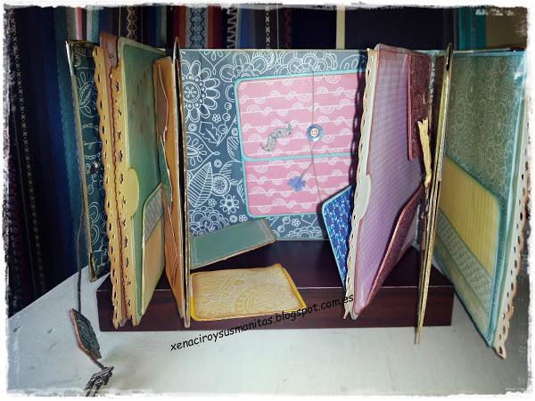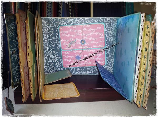 Hace un par de semanas Elena, de ¡pega, papel o tijeras!, publicó un mini-album hecho con sobres (podéis ver el tutorial aquí) Fue amor a primera vista. Ni siquiera conseguí ver el vídeo de un tirón, sino que iba parándolo y preparando el material para hacerlo. Éste es el resultado: La estructura está realizada con 5 sobres de color azul y decorada con los papeles de la colección "indigo ble ...