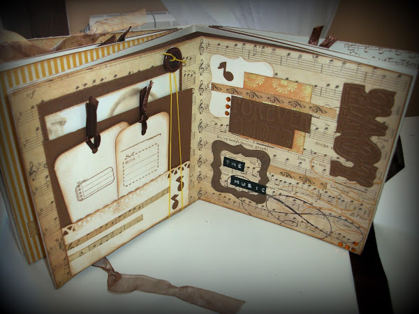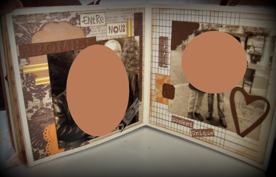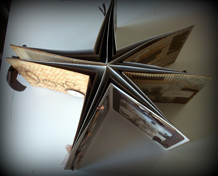 Es un álbum en forma de estrella, en el que he usado un tamaño mas grande que el que hago habitualmente, para que las fotos se vieran bien, los papeles son de My Minds Eyes, mis favoritos, el los tonos ocres y mostazas.