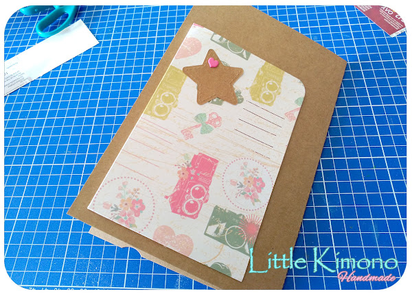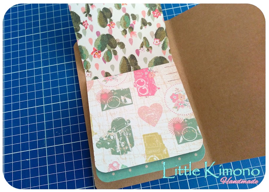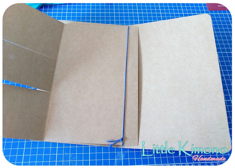 12. En la portada hacemos los agujeros para pasar la goma elástica del midori, en el DIY de "Midori de Piel" podéis ver el paso a paso completo ;) y colocáis el librillo con todas las páginas.