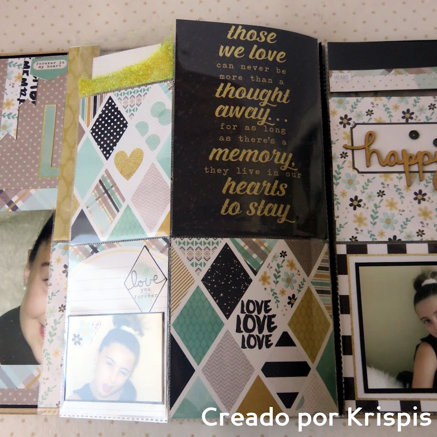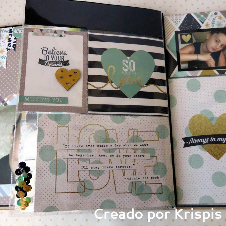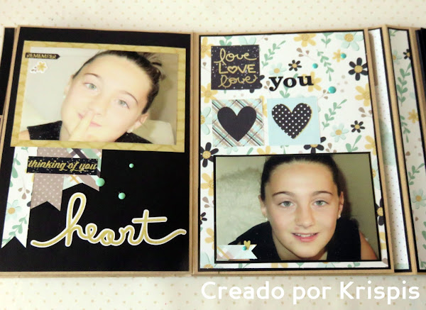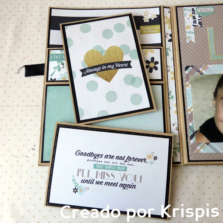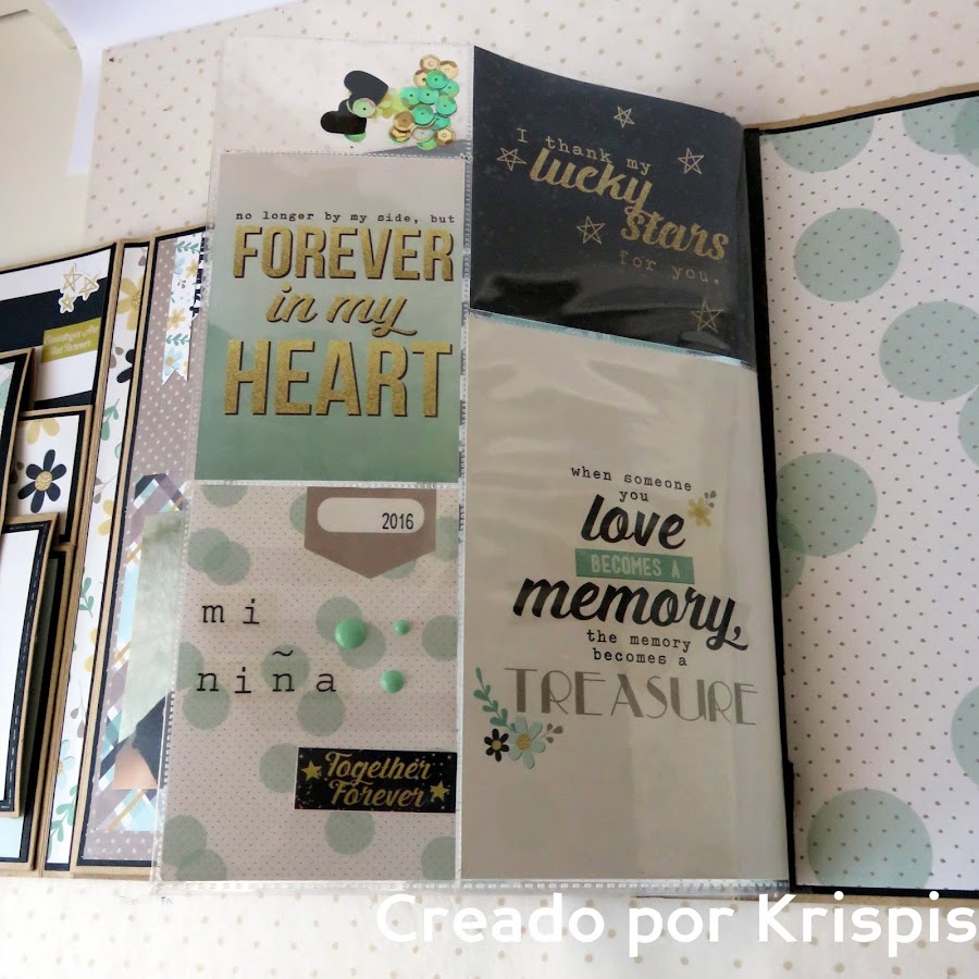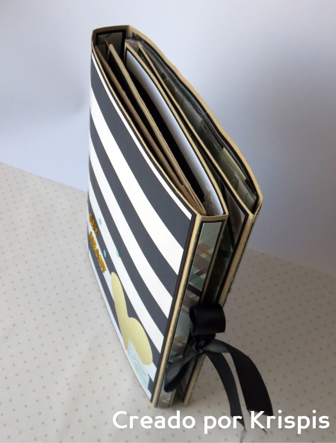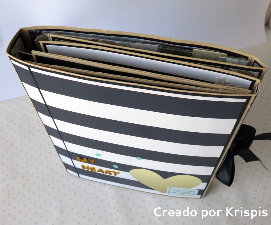 He hecho la base con una cartulina color kraft clarita que compre hace tiempo el la bolsera y para hacer el fondo y las tarjetas cartulina negra. También he usado las paginas de tarjetas y los elementos decorativos de la colección, y esto es lo que ha salido.