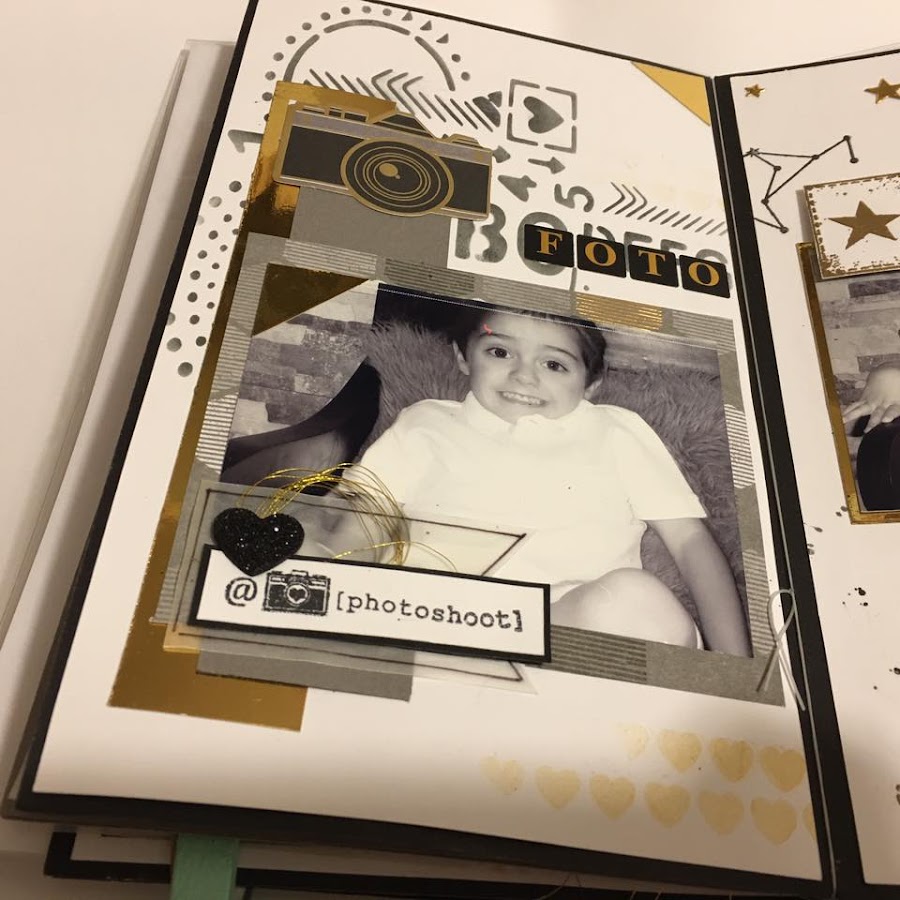 He usado papeles de Docraft, en tonos oro, negro grises y blancos, también he utilizado cartulinas texturizadas de los mismos tonos.