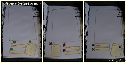 Y éstas son las hojas interiores... muy sencillas, porque de lo que se trata es que resalten las fotos de las distintas muñecas y si se quiere se pueden ir añadiendo adornos según crea conveniente.