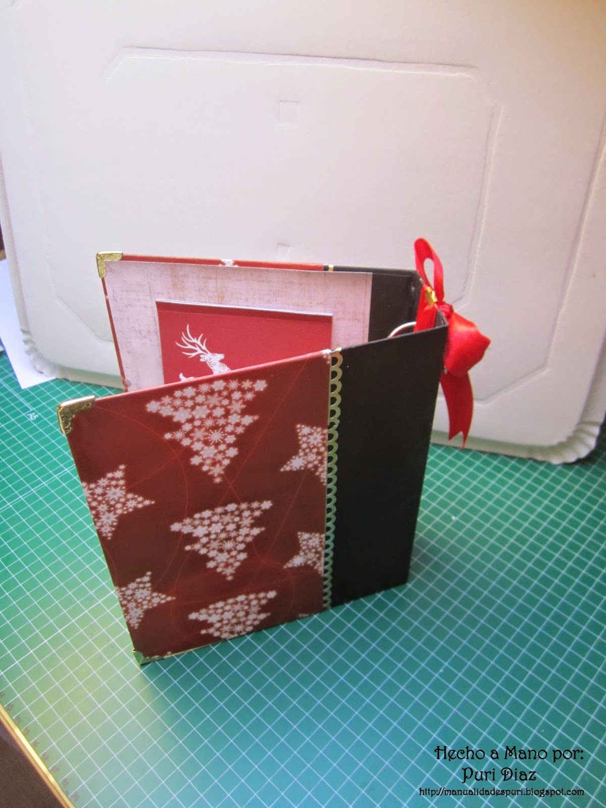 Detalles para Navidad hechos con scrapbooking Un album es un detalle navideño perfecto para acompañar el día que nos invitan a una cena en casa de unos amigos, como regalo del amigo invisible, o simplemente como elemento decorativo dentro de tu hogar. Es un album sencillo encuadernado con espiral y la Bind-it-all, a base de pequeños bolsillos y esquineras para incorporar fotos y mensajes. Es un ...