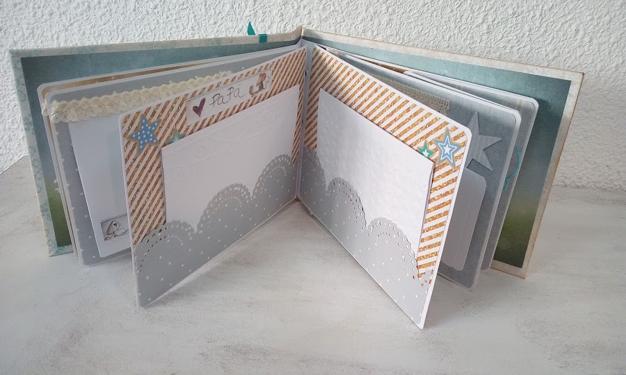 Un nuevo proyecto, regalado este fin de semana pasado: Álbum con encuadernación japonesa, tamaño folio, con temátíca de Bodas de Oro . En él podrán colocar un montón de fotos desde su infancia, noviazgo, boda, hijos, vacaciones, nietos, dejando espacio también para las emociones que quedarán plasmadas en unas tarjetas guardadas en un sobre donde los invitados han podido dedicarles unas palabras. G ...