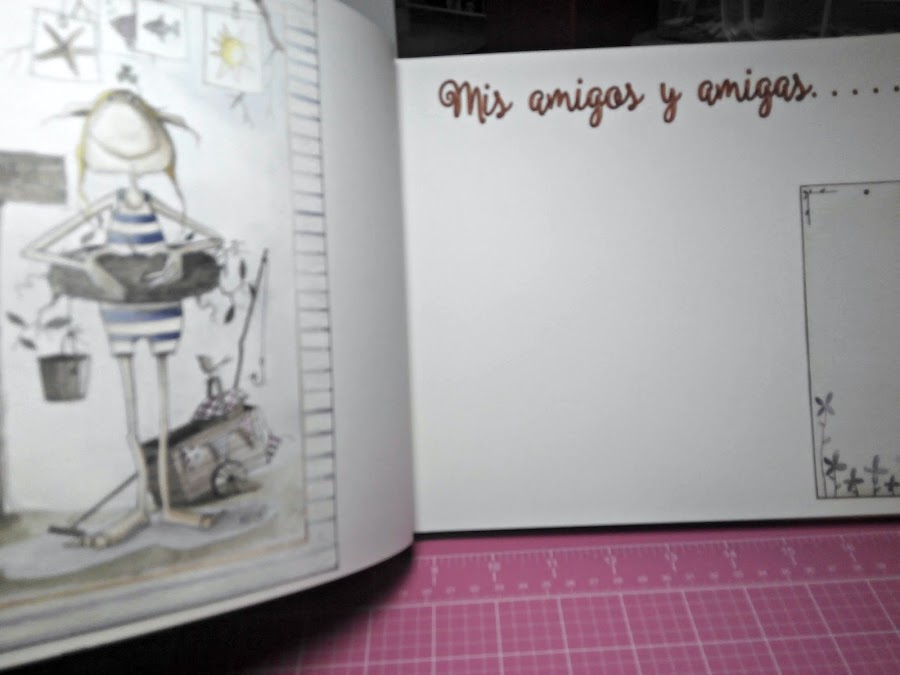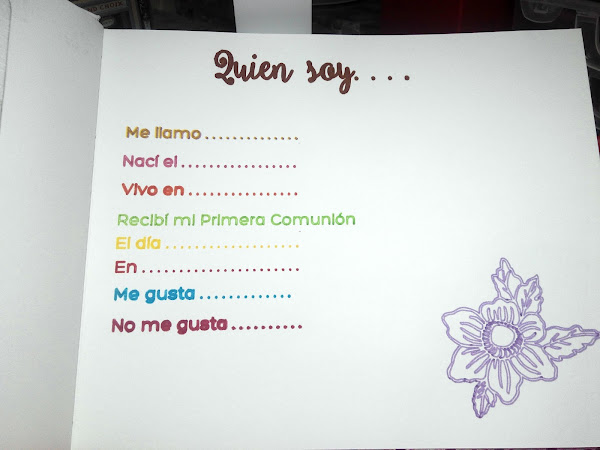 En fin. Uno de los proyectos que he estado haciendo en esta vorágine ha sido un álbum de firmas para mi ahijada Carmen, que hacía su primera comunión. No soy mucho de hacer los típicos álbumes de comunión, a no ser que sea un encargo tal cual, porque pienso (por experiencia con mis hijos) que una vez que pasa la comunión, los niños crecen de una manera bestial y pasan a ser preadolescentes en un abrir y cerrar de ojos. Los dibujitos de comunión pasan al olvido y quedan en la estantería para los restos. Por eso, como mi Carmencita es especial, quería hacerle un álbum que ella pudiera seguir disfrutando con el paso del tiempo, un album para trabajarlo como ella quiera, donde pueda poner fotos, recuerdos, pegatinas, frases...y que también tuviera los recuerdos de su comunión claro.