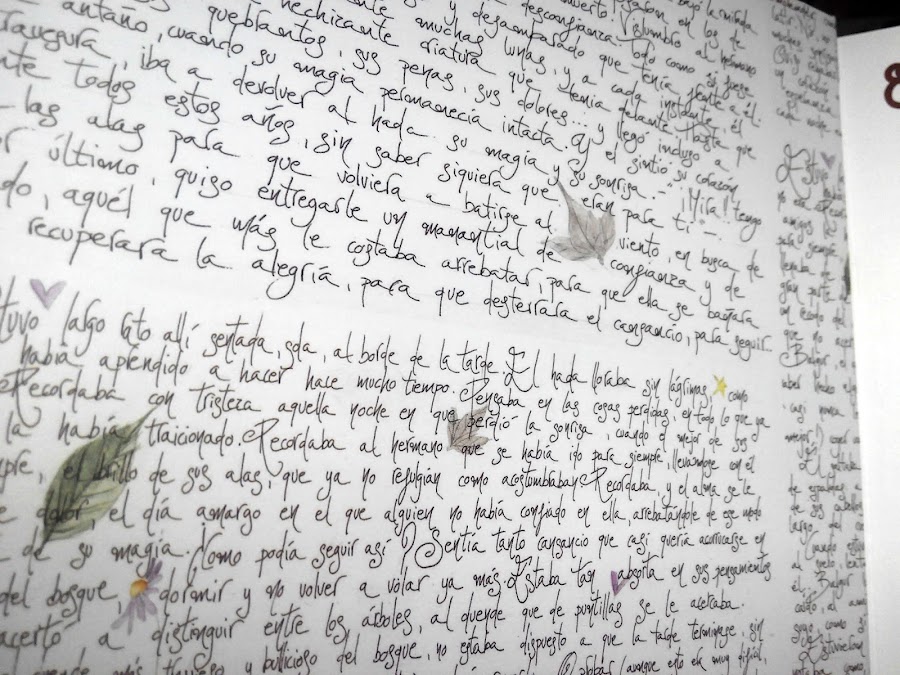 Es lo que me encanta de estos papeles. Sus colores suaves, la textura y que viene en nuestro idioma!! En la contraportada, un cuento escrito a mano. A que es precioso?