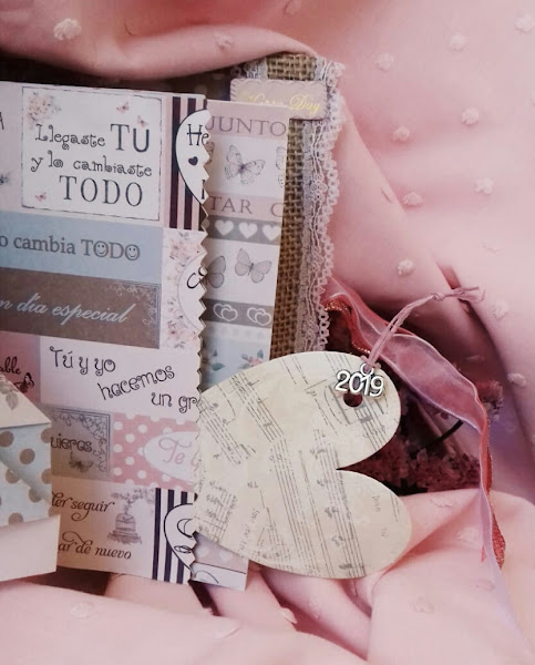 En el interior de esta página un gran corazón, con un colgante del año en el que estamos, fue regalo de nuestra amiga Mia del blog Craftartista.