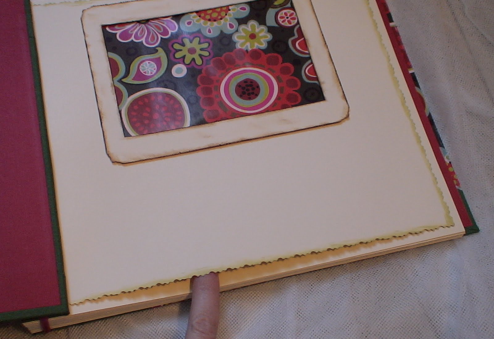 Dentro Marta quería un espacio para poner la foto del bebé, así que le preparé un marco con el fondo igual que la portada, así si la foto es más pequeña se ve el fondo con las flores, esta hoja al ser la primera le hice un borde con formas y lo chalkeé con tinta color verde manzana,