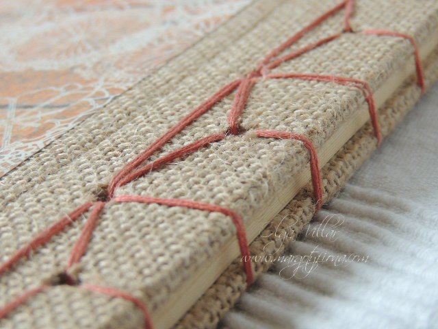 El formato que he utilizado para esta ocasión, es el que yo llamo "Fusión", en el que integro una encuadernación japonesa, con portadas de scrapbooking e interiores con ilustraciones, sin adornos añadidos.