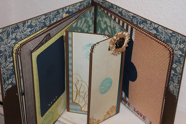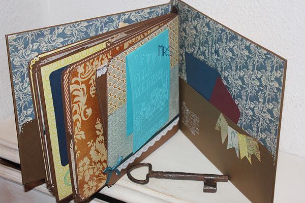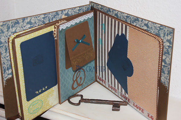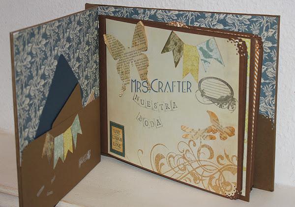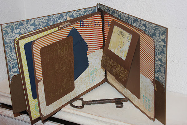 Aquí estoy con un nuevo trabajo de scrap. En esta ocasión un álbum que se ha regalado a una persona en su 50 cumpleaños. Encuadernación japones ( 23x31 cm.) con 10 hojas tamaño folio, plegadas varias de ellas, tarjetas en cascada, trípticos....Todo ello con un aire muy vintage.