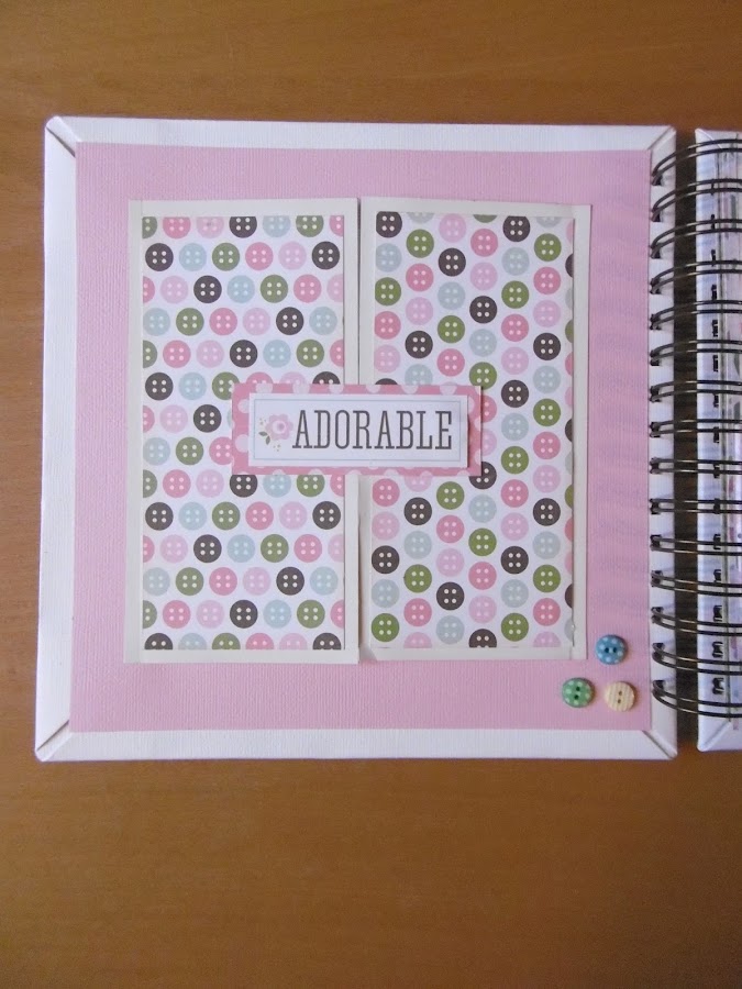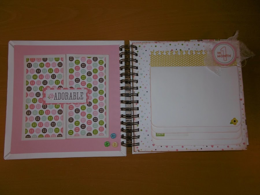 Al abrir el álbum nos encontramos con la cara interior de la portada y la pagina del primer mes de Uxue, en la portada no pude evitar abrir una ventada, que ahora los niños tienen fotos antes de nacer.