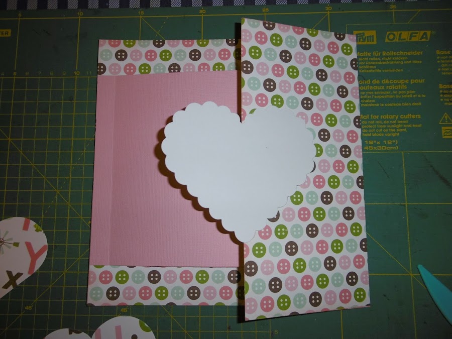 Lo colocamos sobre el que ya tenemos y le ponemos un poquito de cinta doble, eso hara que se pegue al corazón al cerrar y quede situado....