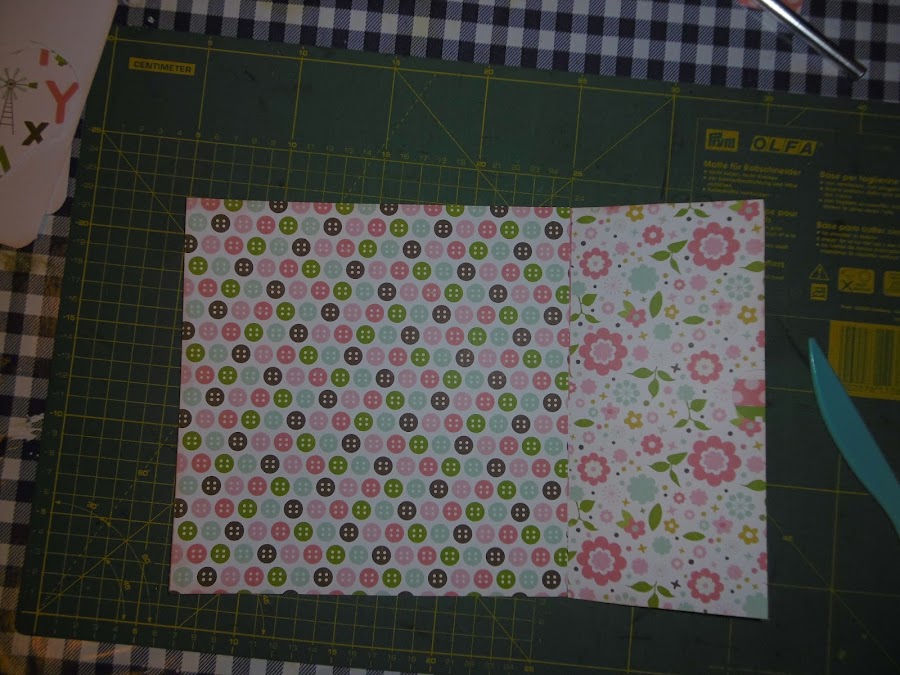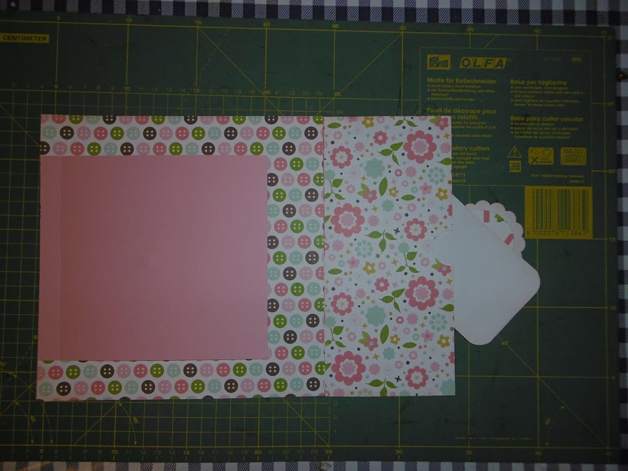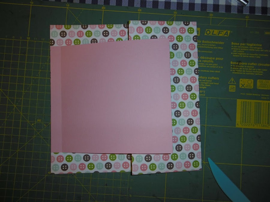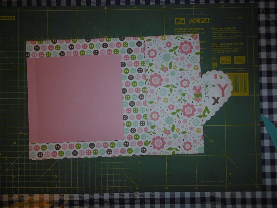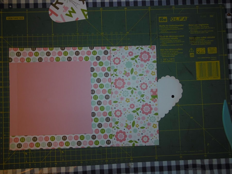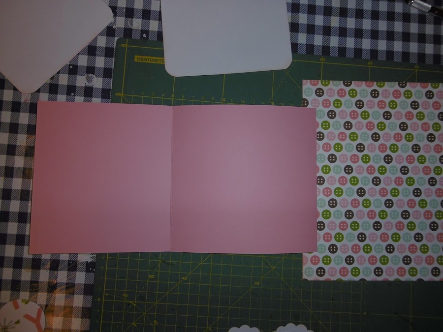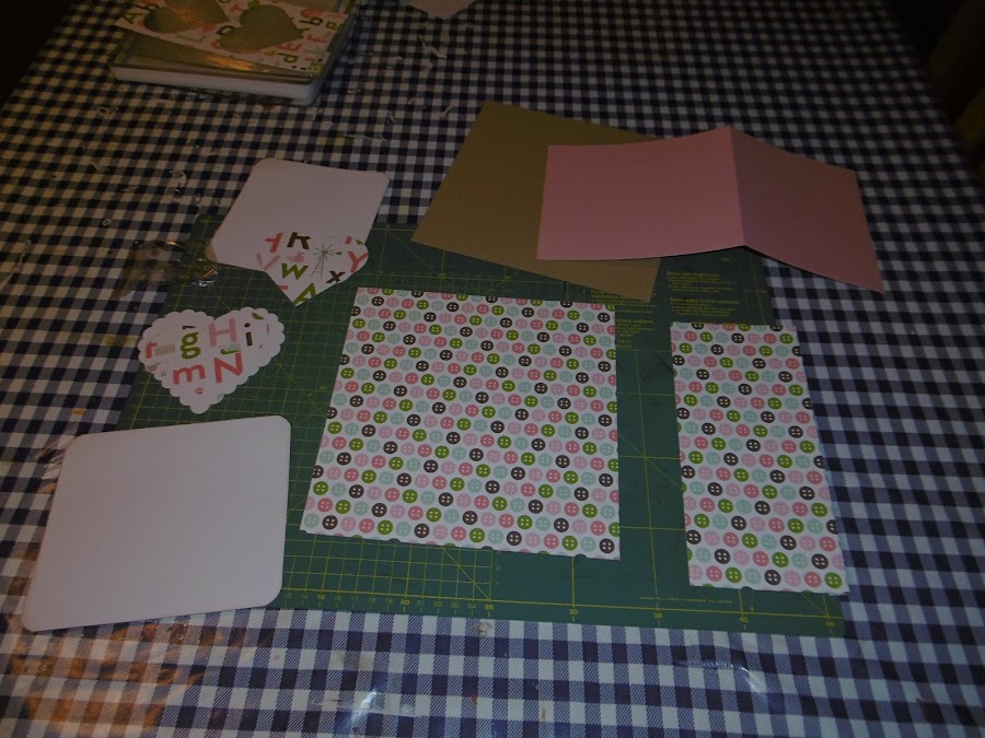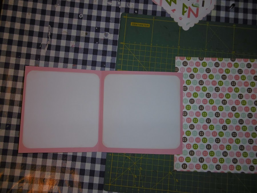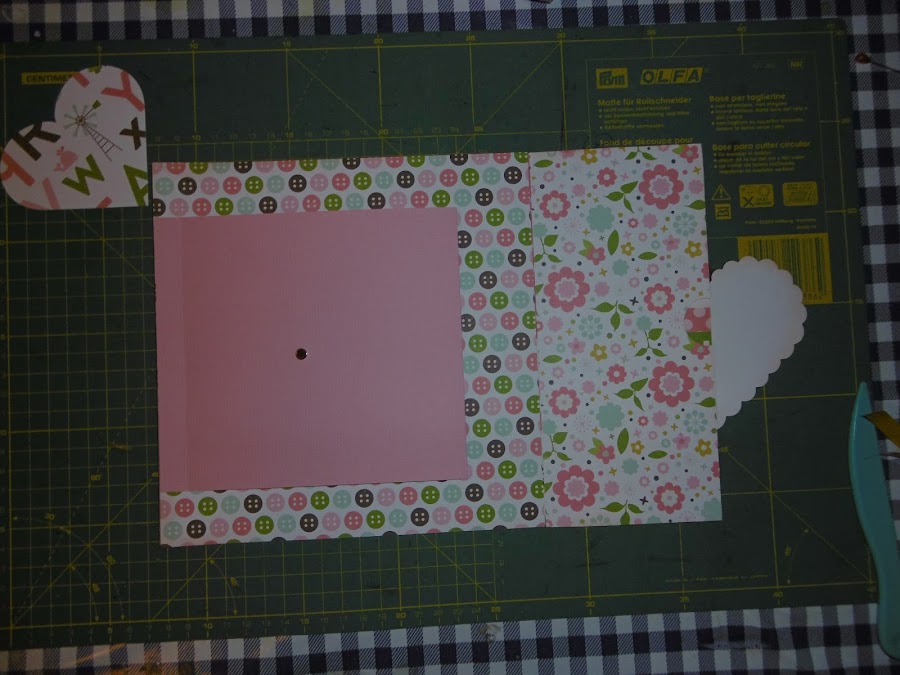 Materiales, hoja d epapel kraf para la base de 20X20cm, papel decorado 1 de 20X20cm, 1 de 20X10cm, cartulina lisa de 30X15 con doblez en el medio, cartulinas blancas de 14X14cm y corazones troquelados, para el cierre imanes planos.