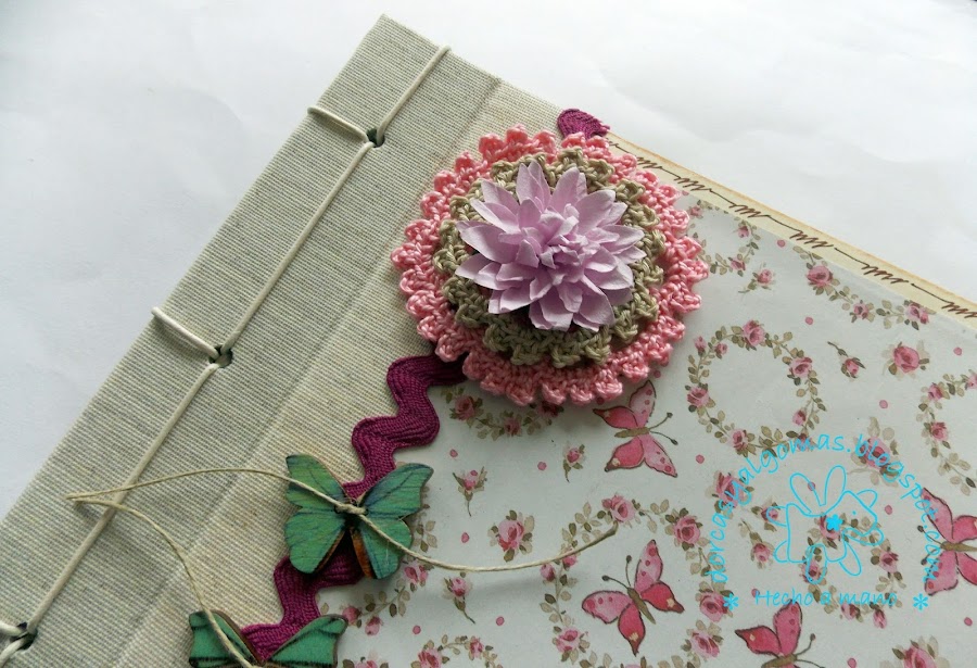 En esta ocasión os muestro un álbum para guardar fotografías para Alison, es de estilo romántico con detalles en color rosa y encuadernación japonesa.