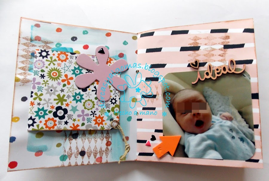¡Buenos dias! Este es el primer post de una serie de proyectos de scrapbooking dedicados a mi sobrina. Espero que os dé ideas sobre álbumes de fotos y bonitos regalos personalizados para bebés. Hoy os presento el mini álbum que hice por su nacimiento inspirado en uno de los libros de Karine Cazenave, llamado "Les ateliers de Karine: les challenges". Me llevó bastante tiempo pero creo que ...