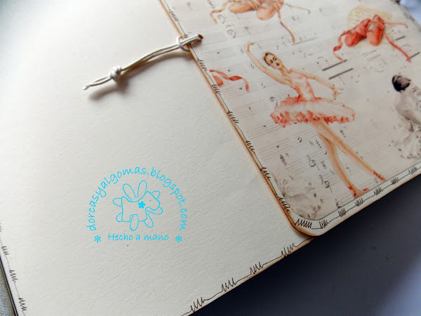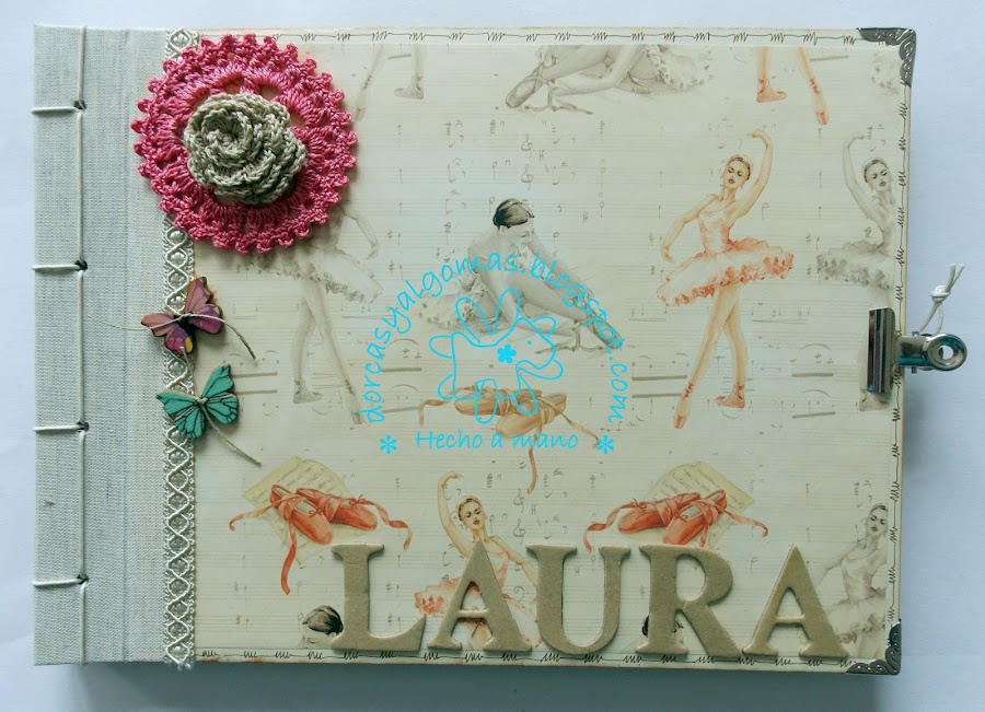 Este es otro álbum de fotografías con encuadernación japonesa para Laura. El papel decorado que he elegido esta vez es con motivos musicales y de ballet.