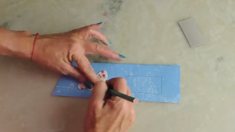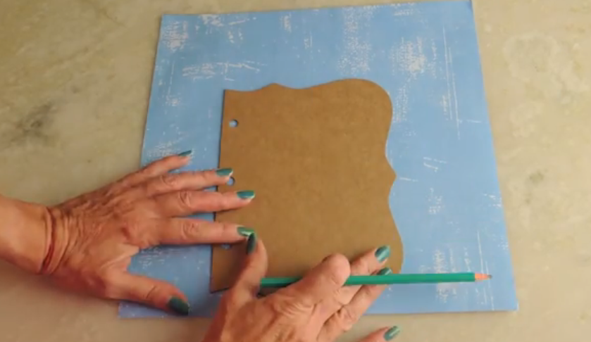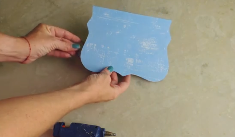 Pasamos el molde de la letra y el rectángulo de cartón al restante de papel estampado.