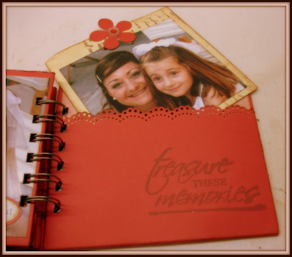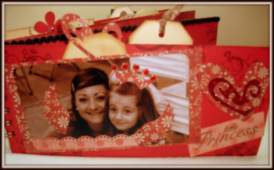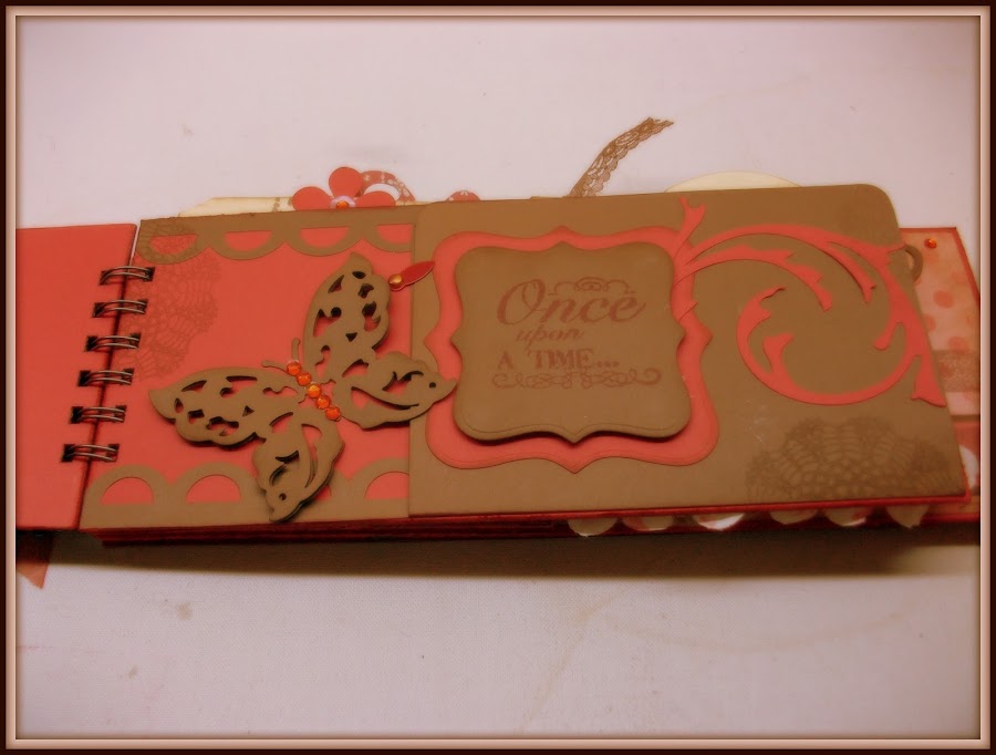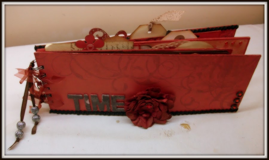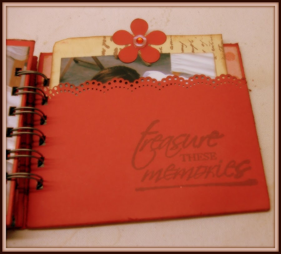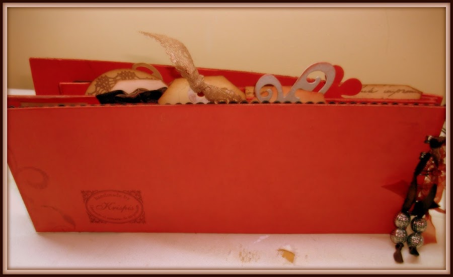 Es un álbum que hice con unos cartones duros que forre con cartulina en tono cereza, para decorar he usado papeles de My mind eyes de uno de los taco papeles que tanto me gustan, todos en los mismos tonos.