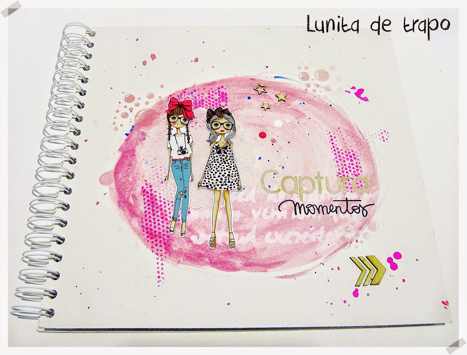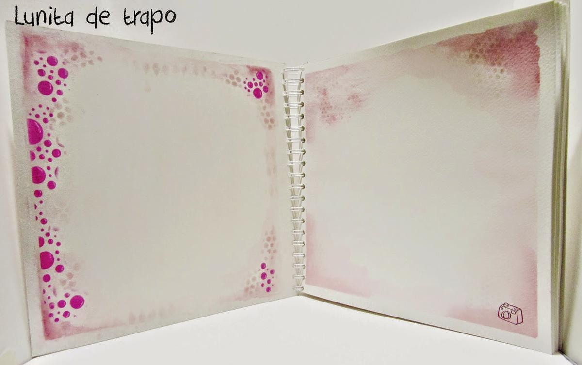Porqué lo he hecho así, pues por una simple razón, la personita que me lo encargó quería un álbum en el que junto a su mejor amiga pudiera poner muchas fotos y alrededor de ellas texto y títulos decorando las páginas, con lo que poner papel decorado estaba descartado ya que no luciría el texto ni los dibujos que ellas quieran poner, por eso me decidí a hacerlo en papel de acuarela de 300g/m2 para que tuviese cuerpo las páginas, mis acuarelas winson & newton y tintas Distress para darle un toque de color y plantillas hechas con la cameo.