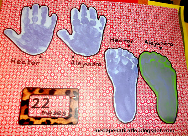 Desde el primer mes de vida de mis hijos les saco las huellitas de manos y pies para hacerles un álbum (sólo tengo uno, ainsss, tendrán que compartirlo) como recuerdo.