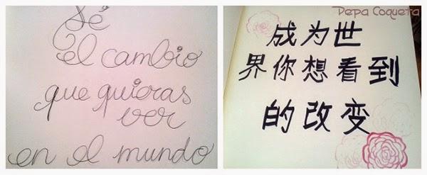 Además les incluyó una frase preciosa a cada una, de esas que te hacen reflexionar. Las realicé a mano con mi mejor pulso. Y para sorpresa de todas, la de Elena se la escribí también en chino ;)