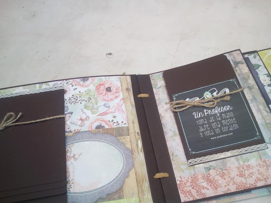 Con espacio para fotos , dibujos, dedicatorias para cada uno de los alumnos, espacio para fotos de grupo y sobre para carta