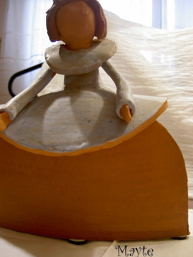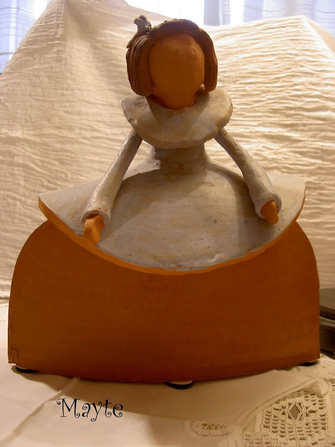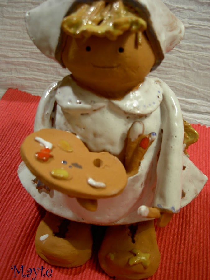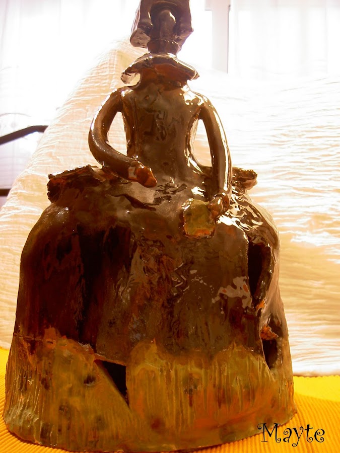 Menina....en esta pieza me ayudo un compi que hace maravillas de Meninas la pinto él y como veis tiene unos colores preciosos y muy parecido a plateados y cobres....lo hizo mezclando casi todos los colores de los que disponemos....esta dedicada también a él...su pequeño homenaje..