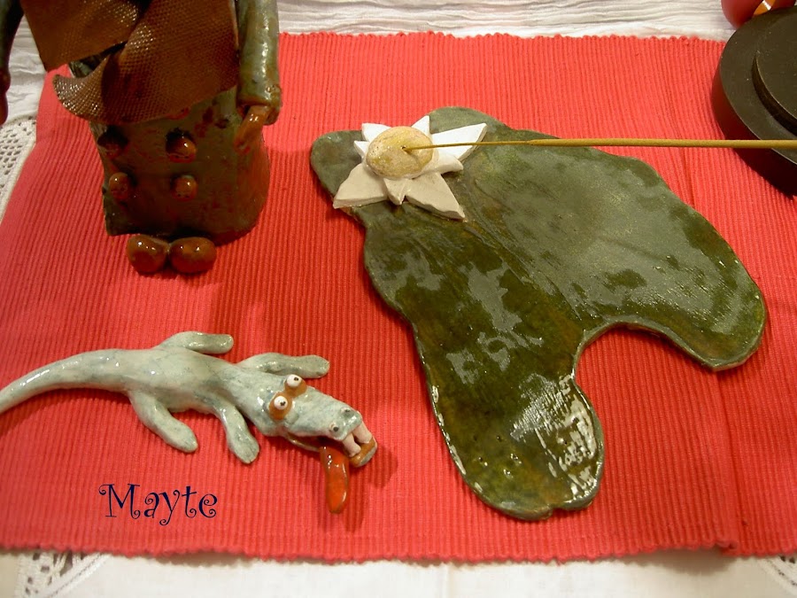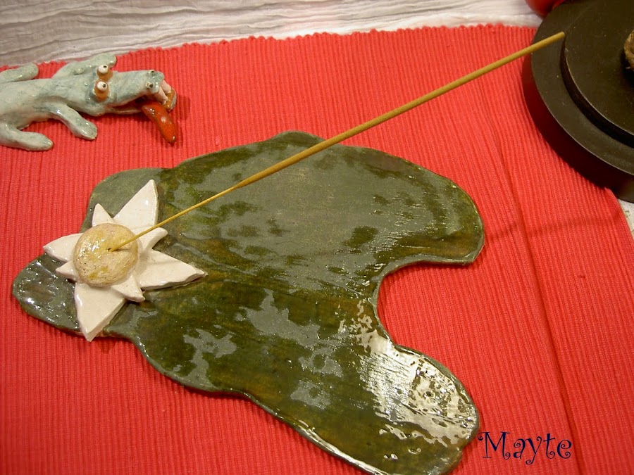 Y aquí la gran obra...jjaja un cocodrilo y un Nenufar quemador de incienso .... hecho por mi peque....