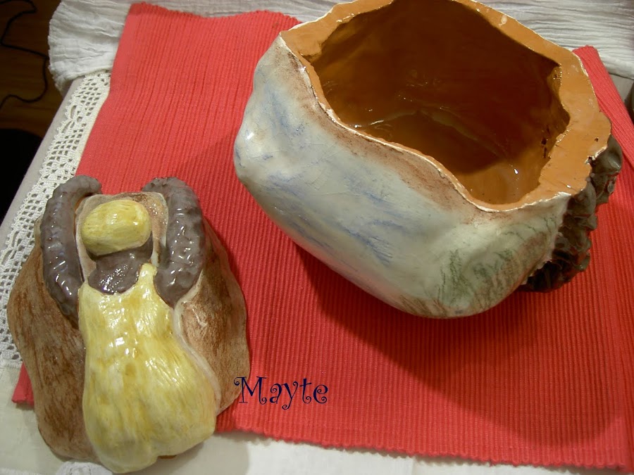 esta me encanto hacerla...esta hecha con la tecnica de vaciado y modelado y pintada con esmaltes..