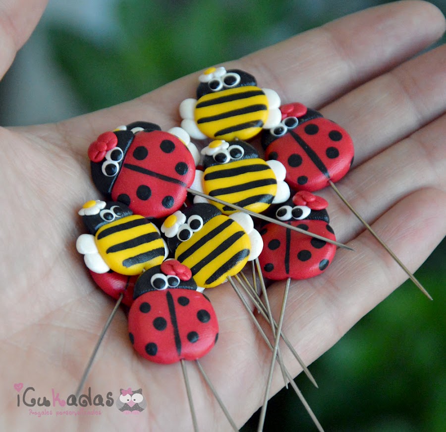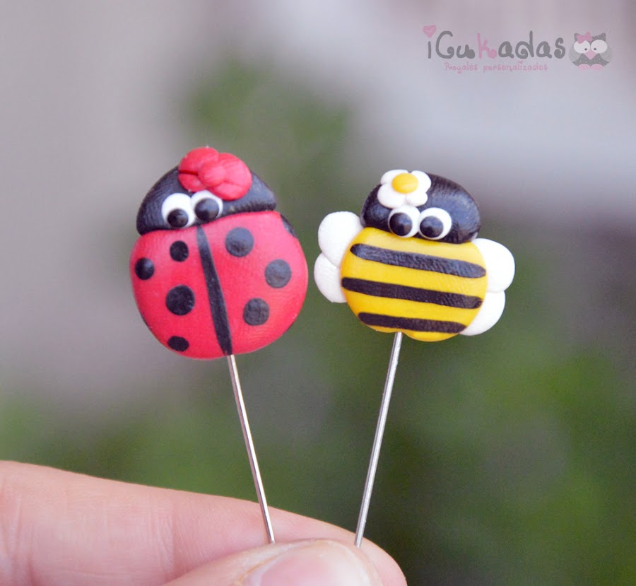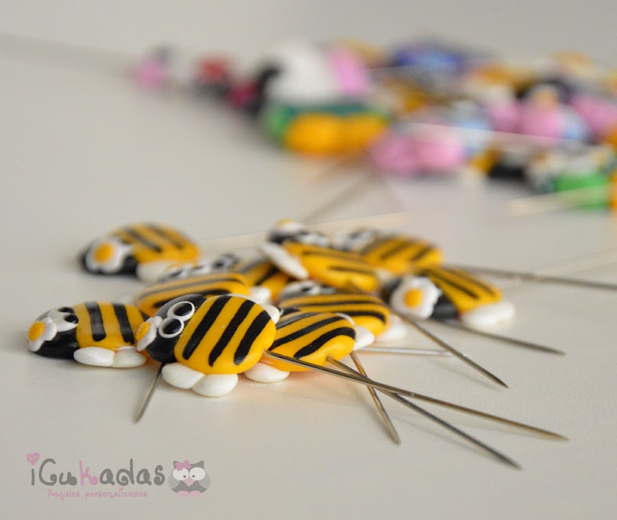 Esta semana, no os traigo una novedad, pero os quería enseñar este pedido de alfileres de abejas y mariquitas, para que veáis como los mismos diseños van evolucionando con el tiempo.