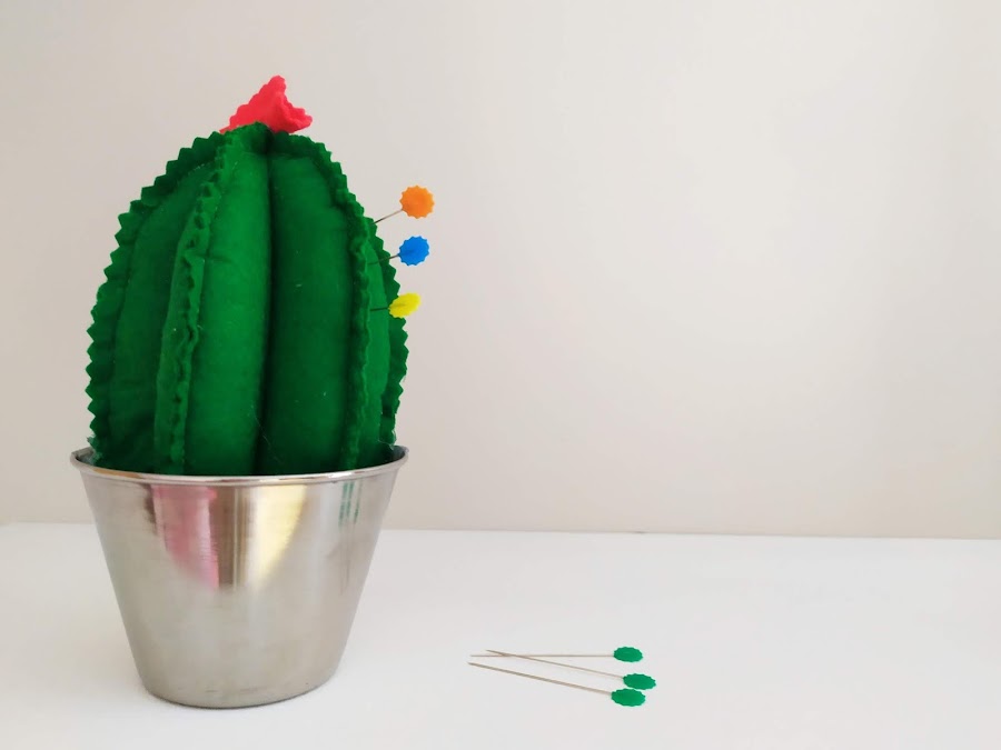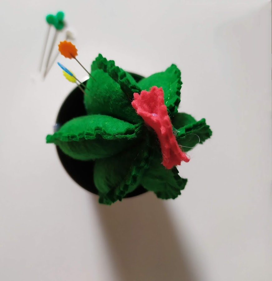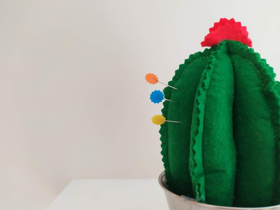 Cortaremos 6 trozos de fieltro en forma de arco y ajustados al recipiente que vayamos a utilizar, los poseemos de dos en dos, formando 3 cavidades que uniremos por el centro. Para terminar solo nos queda rellenarlo y pegarlo al macetero. Puede ser que así te parezca complicado, pero en el video podrás ver lo sencillo y rápido que es.