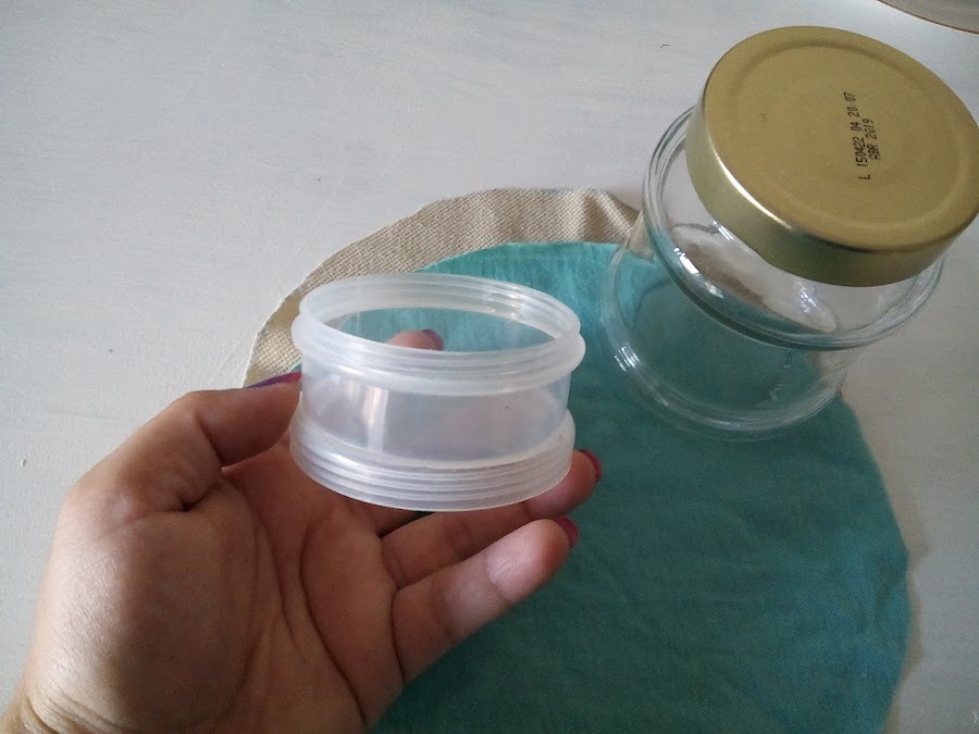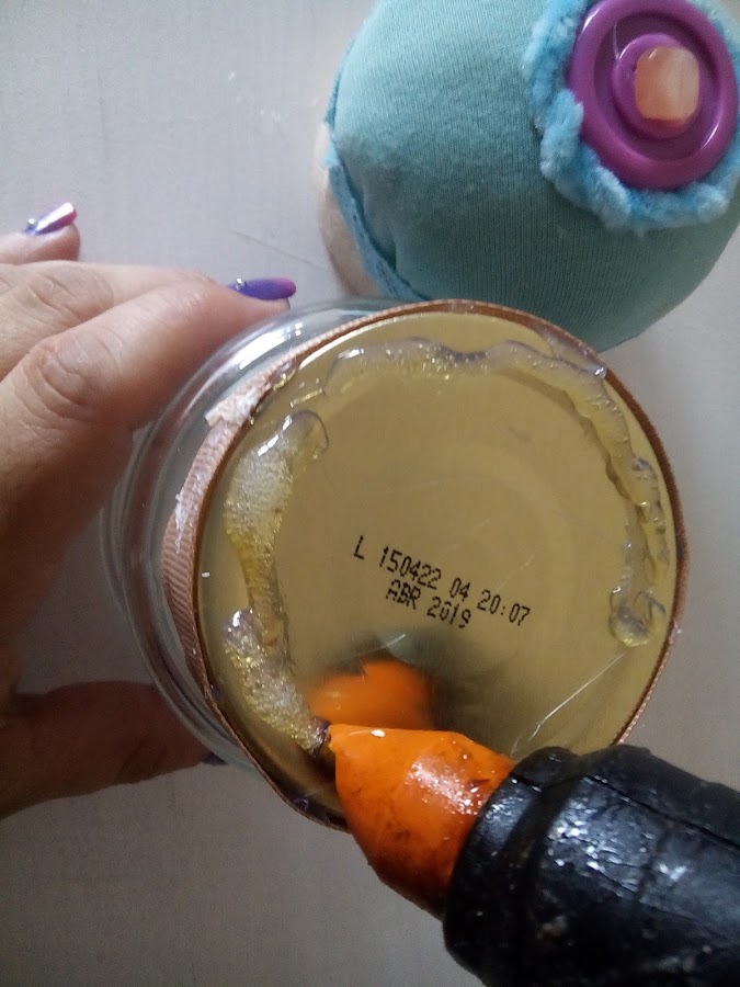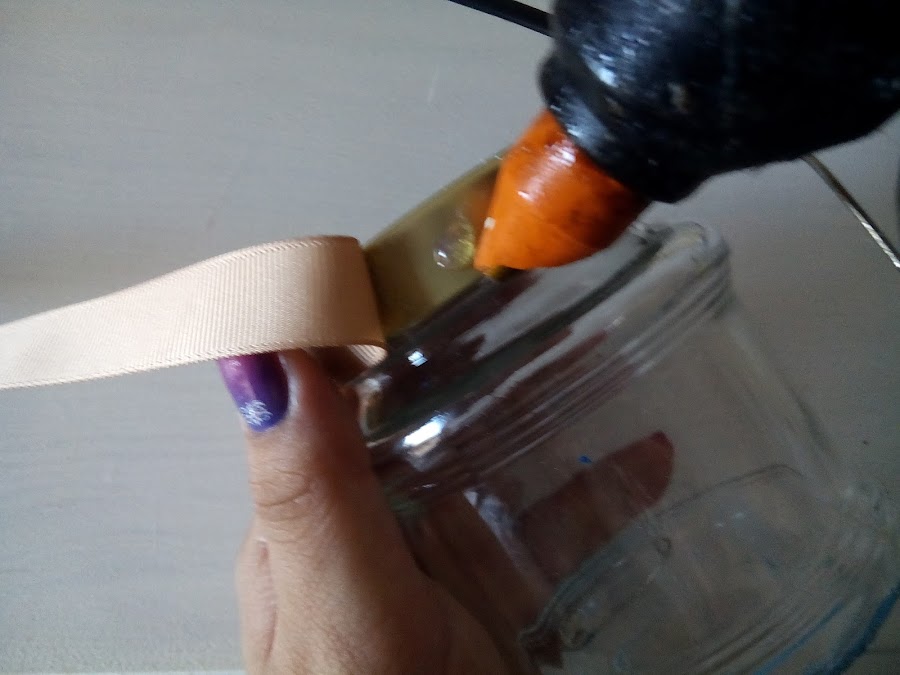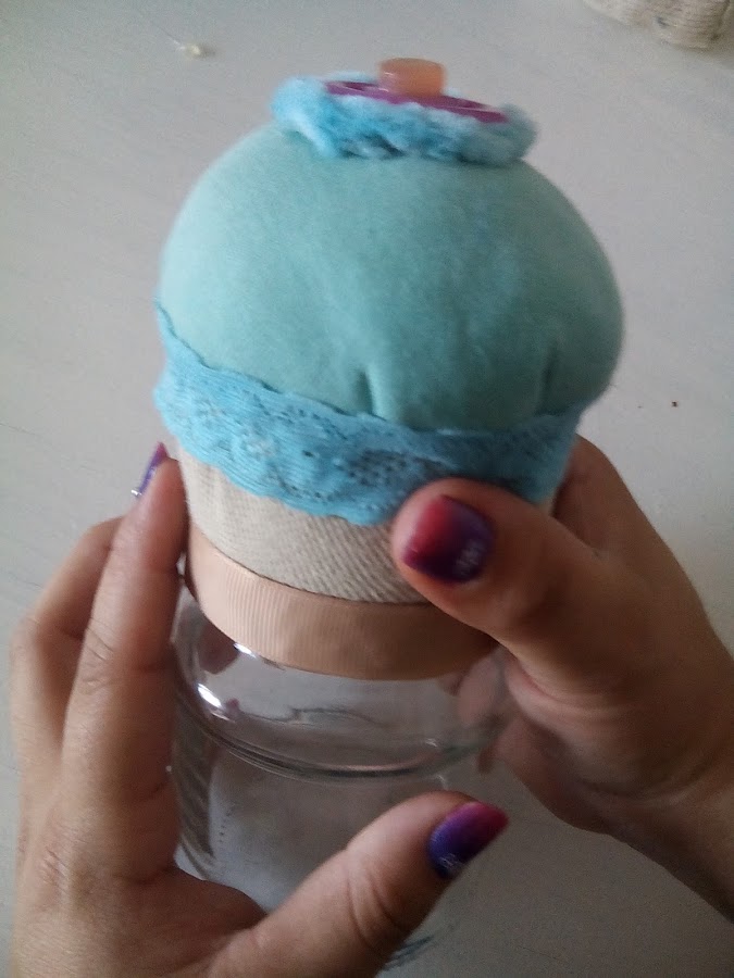 Si quieres puedes dejarlo así, pero yo utilicé el frasco mermelada para almacenar cositas que siempre quiero tener a la mano, así que alrededor de la tapa le pegué una cinta de raso...