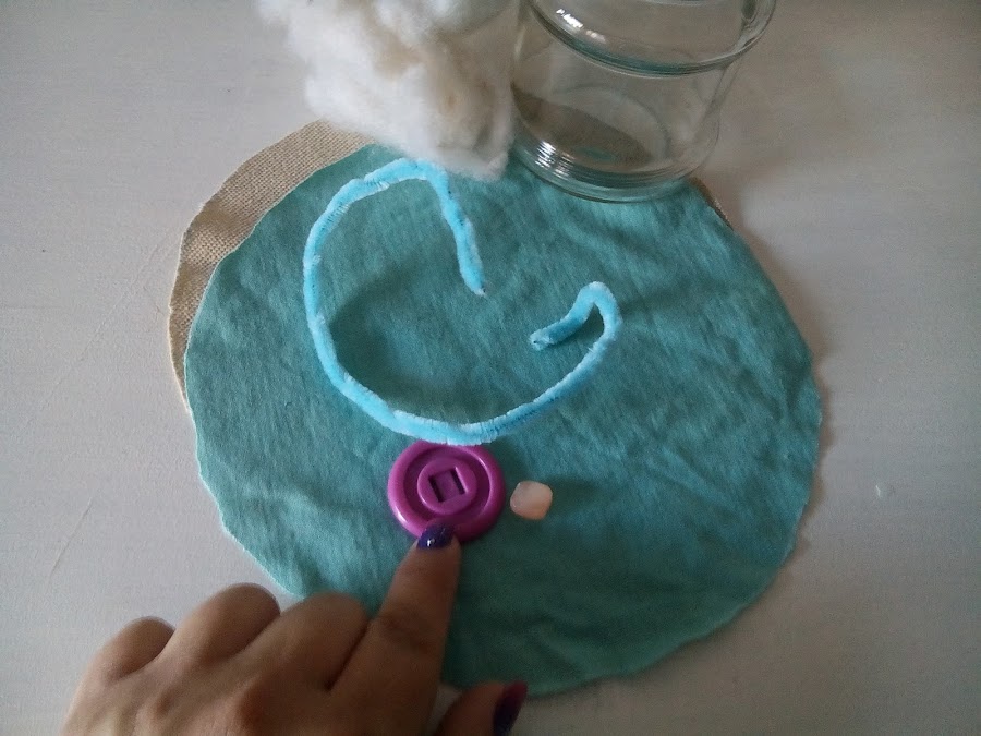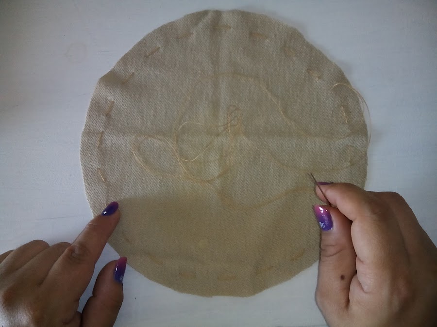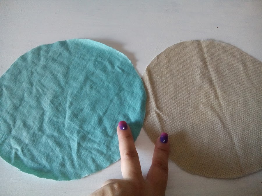 Materiales:* 2 cortes redondos de tela de 20 cm de diámetro: uno para la base y otro para la parte de arriba