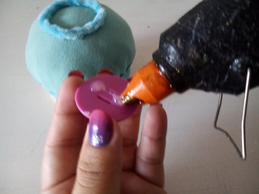 Justo en medio le pegué de la misma forma un botón grande y encima uno más pequeño
