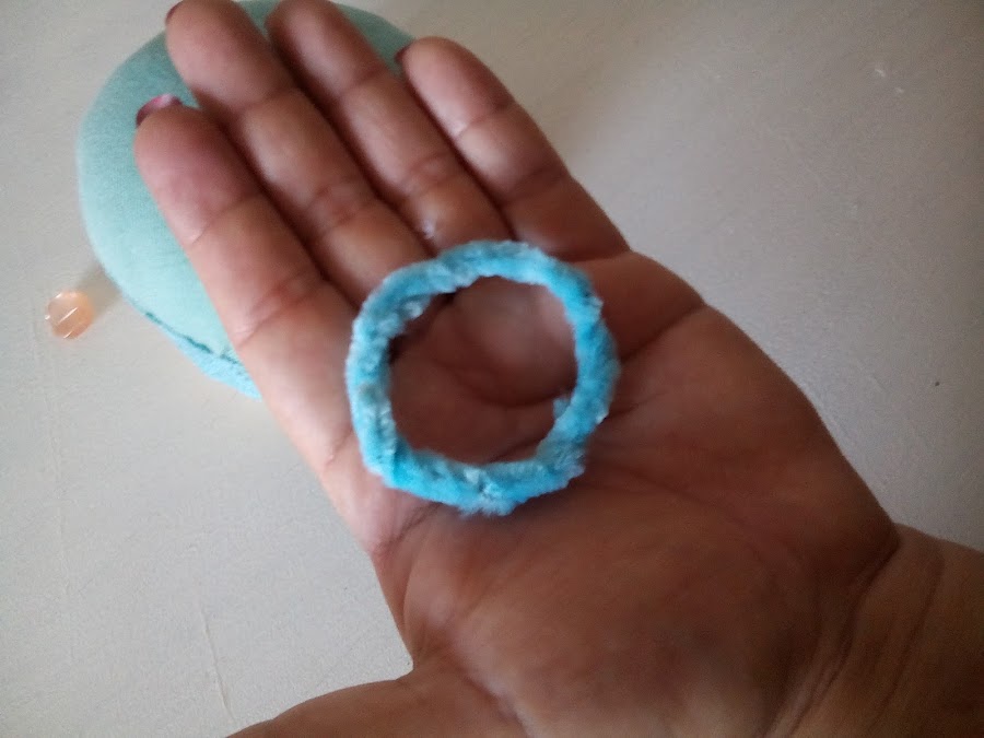 Luego hice una anilla con el alambre peludo, enrollándolo sobre sí mismo