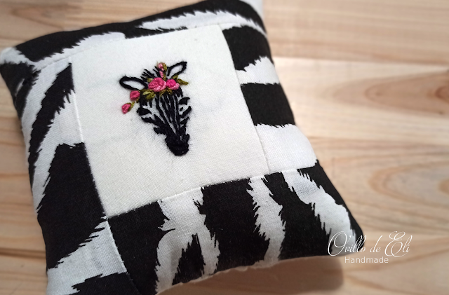 El bordado se realiza antes unir la parte posterior del alfiletero, para una mejor maniobra del bordado