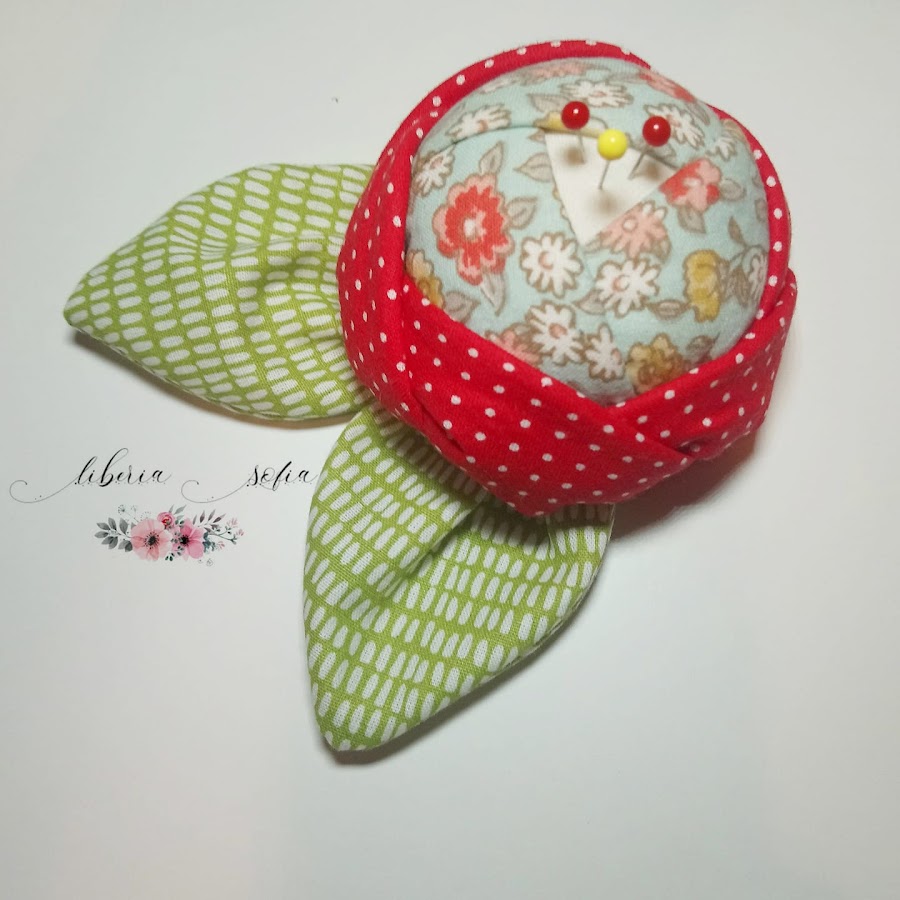 Te presento esta preciosa flor donde puedes sujetar los alfileres mientras estás cosiendo, es una manera de aprovechar retales de tela que tengas muertos de risa por tu taller.